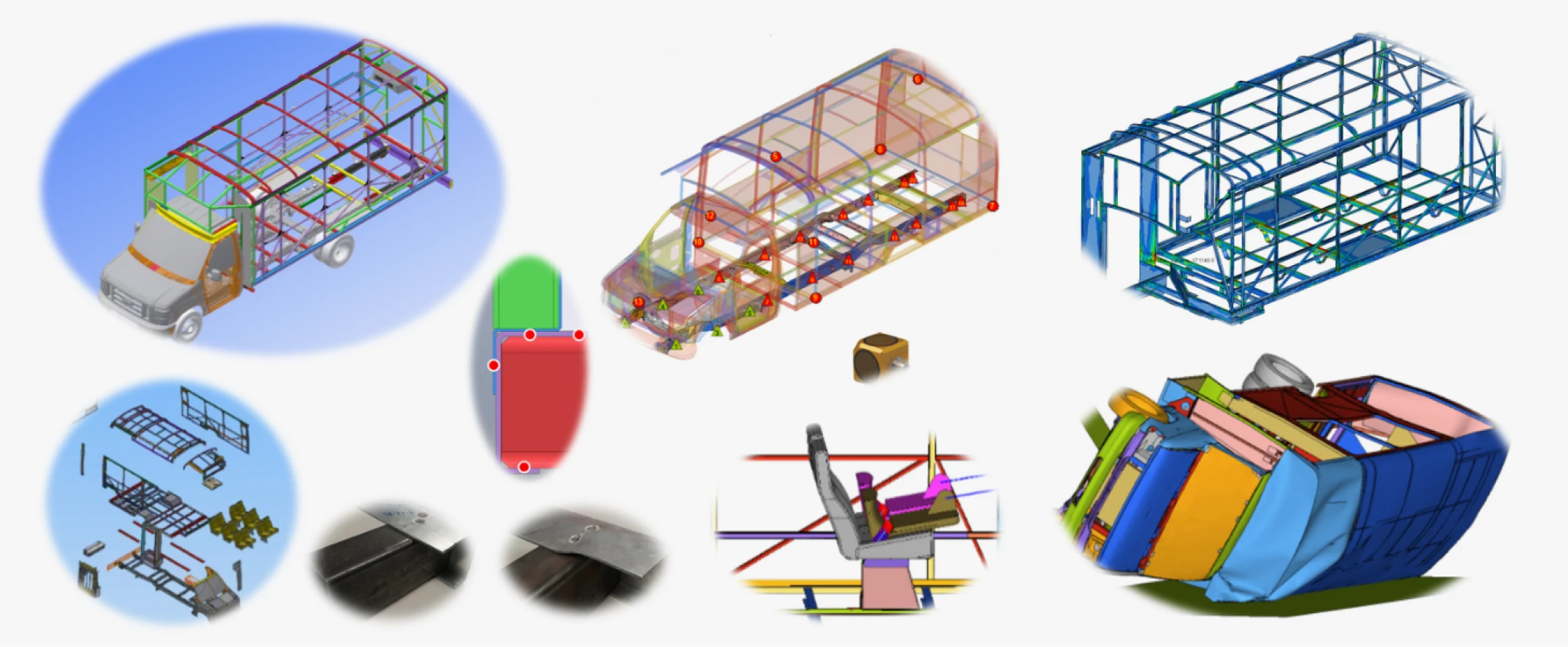 Design and engineered a modular steel body structure onto an OEM cutaway chassis and cab for a para transit bus platform. Performed FEA simulations for rollover, roof crush, and side/rear impacts in compliance with NHTSA, IIHS, FMVSS, and ECE regulations, validated against physical test data. Supported full vehicle instrumentation and executed durability testing per Altoona standards, followed by load case development for CAE correlation.